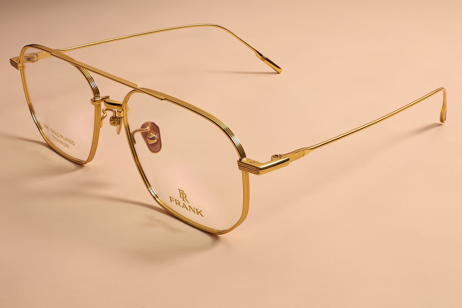 Introducing our 24k Gold Plated (FR991) gold spectacle frame, Gilded Elegance {model number 991 }. Elevate your eyewear game with this stunning piece that seamlessly marries luxury and style.