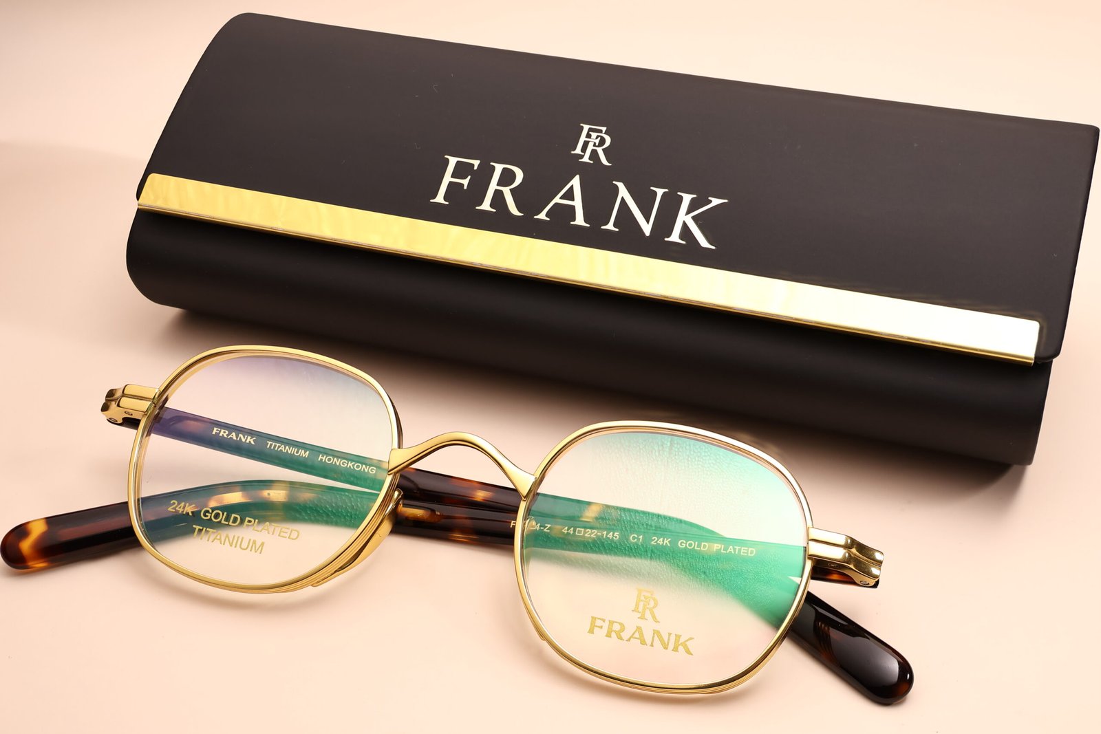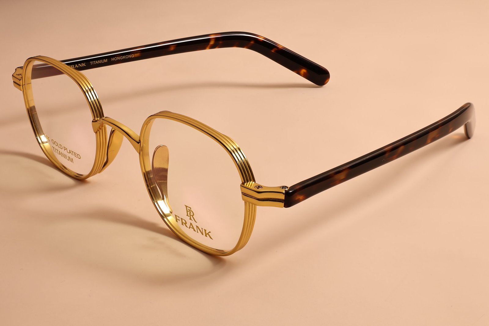 Introducing our FR 130 titanium frame, Gilded Elegance {model number FR130}. Elevate your eyewear game with this stunning piece that seamlessly marries luxury and style.