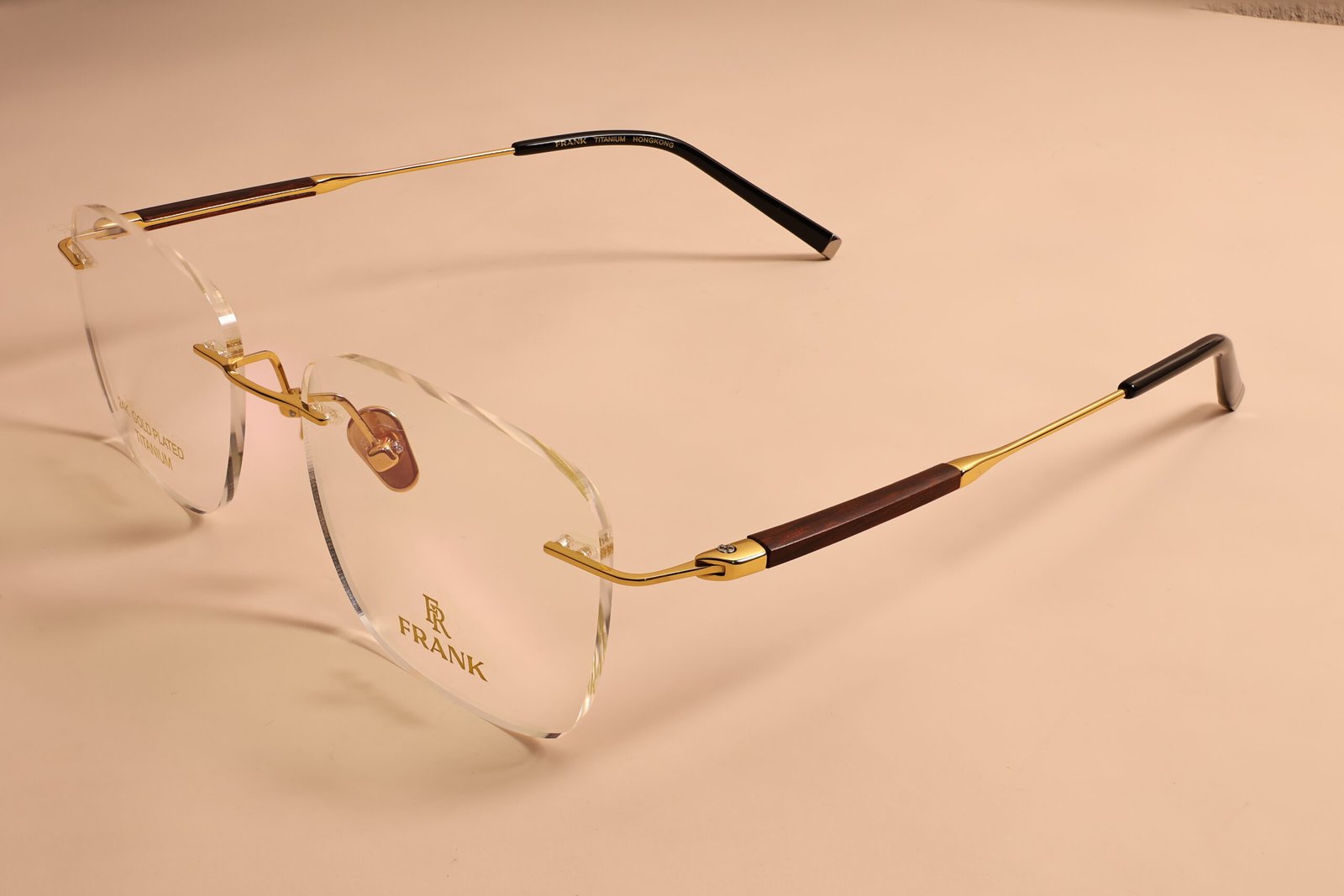 Introducing our FR123 titanium frame, Gilded Elegance {model number FR123}. Elevate your eyewear game with this stunning piece that seamlessly marries luxury and style.